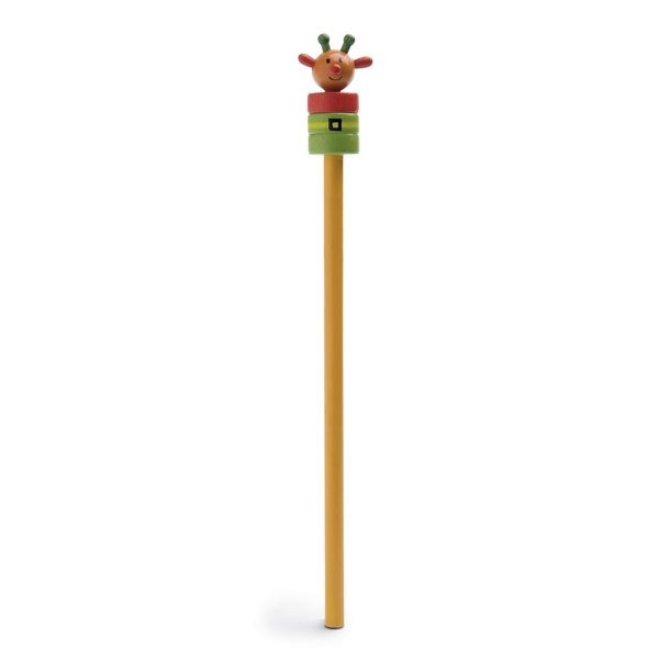 Lápis com figura em madeira.