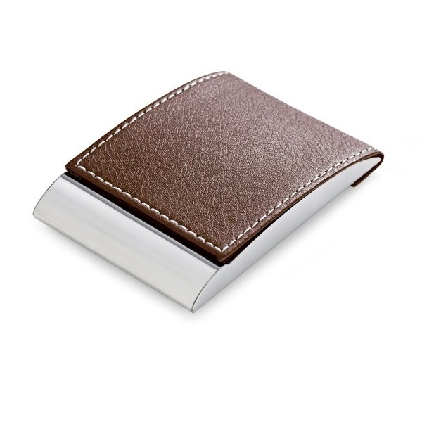Porta-cartões em metal e imitação de pele. Fornecido em caixa.