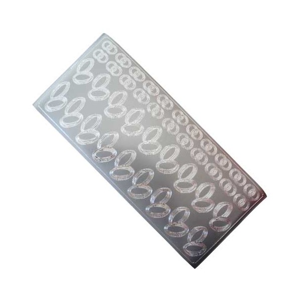 Folha de 24x10cm com autocolantes prateados, com 2 modelos de alianças:
