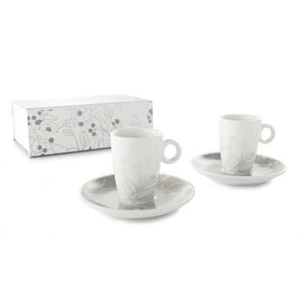 Conjunto de 2 chávenas de café em porcelana com pintura metalizada.