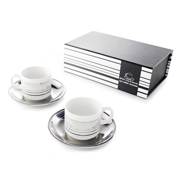 Conjunto de 2 chávenas de café em porcelana com pintura metalizada.