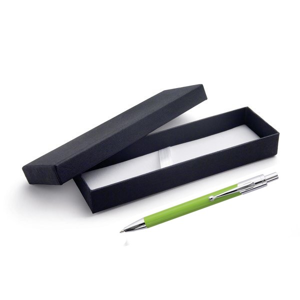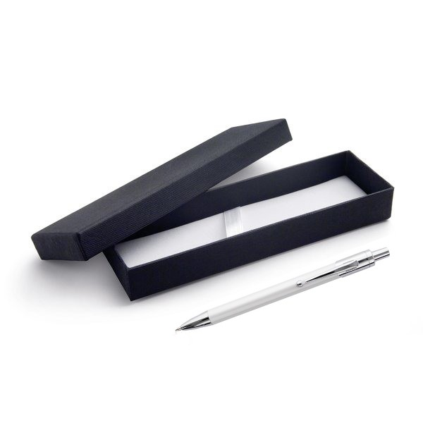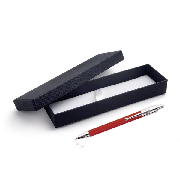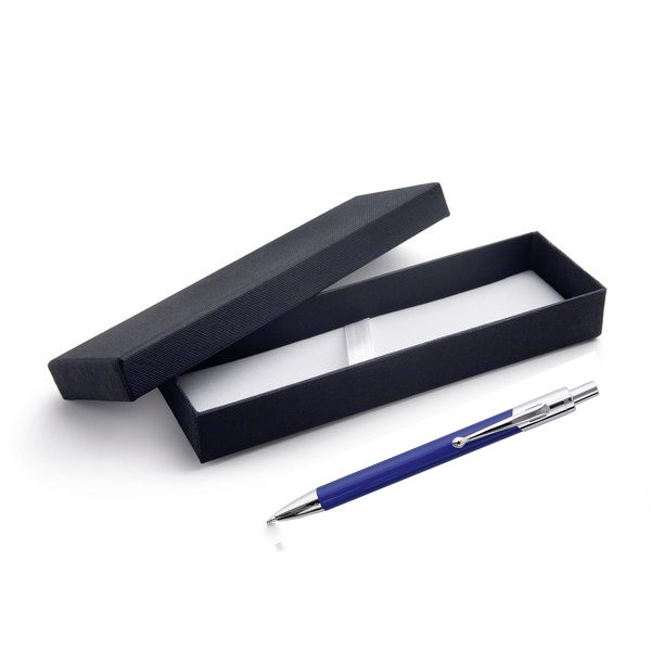Caixa para esferográfica em cartão, com almofada em veludo.